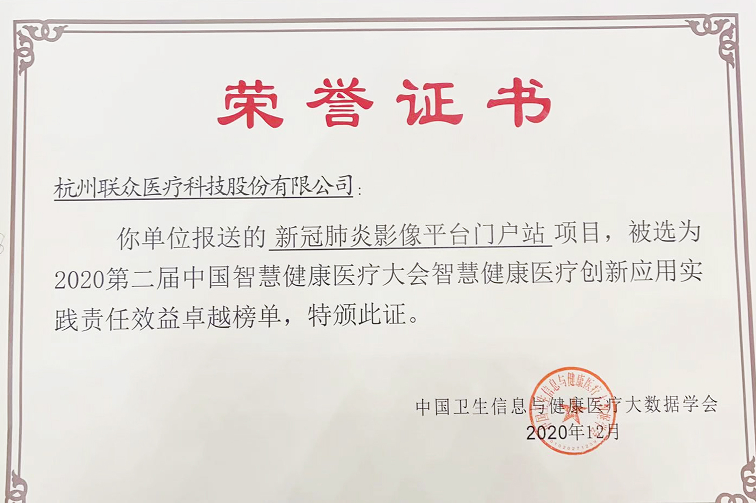 2020,联众医疗凭借强劲的综合实力,相继荣获“数字抗疫”专题赛小组冠军、杭州市“准独角兽”、杭州市国际软件名城创建项目、2020中国国际绿色发展创新企业、智慧健康医疗创新应用实践责任效益卓越奖、数据资产管理优秀案例等多项荣誉大奖,行业认可度和社会影响力持续攀升。